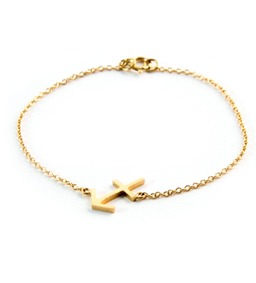 18k yellow gold Sagittarius symbol set on 14k yellow gold bracelet
