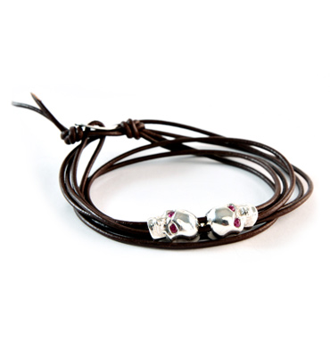 Steraling silver skull with sapphires set on an ebony bracelet. *Bracelets are sold separately.