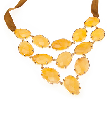 Faceted yellow jade and gold dipped silver necklace with silk ribbon